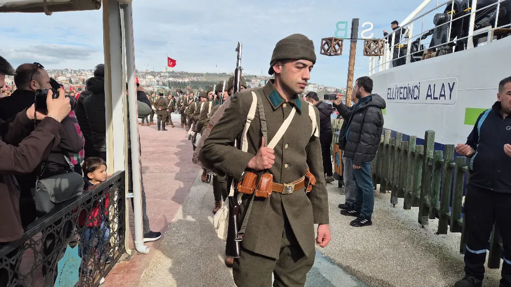 Program, saat 14.30’da Rumeli İskelesi’nde düzenlenen temsili uğurlama töreniyle devam etti. Dönemin asker kıyafetleri giydirilen Mehmetçikler, "Elli Yedinci Alay" isimli feribota binerek dualar eşliğinde limandan ayrıldı. Çanakkale’ye doğru sembolik olarak hareket eden feribot, 57. Alay’ın 111 yıl önceki yolculuğunu bir kez daha hafızalara taşıdı. Süleymanpaşa Su Ürünleri Kooperatifi üyesi balıkçılar da tekneleriyle denizde kortej oluşturarak uğurlamaya eşlik etti.