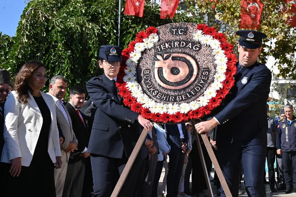 Yürüyüşün ardından Tarihi Valilik Binası önünde Gazi Mustafa Kemal Atatürk'ün manevi huzurunda çelenk sunma töreni gerçekleştirildi. Törende sırasıyla Tekirdağ Valiliği, Tekirdağ Garnizon Komutanlığı, Tekirdağ Büyükşehir Belediyesi ve Muharip Gaziler Derneği Tekirdağ Şubesi'nin çelenkleri sunuldu.