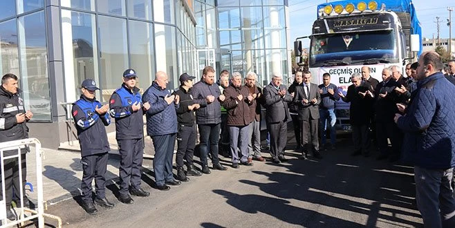 YARDIM KAMYONU DUALARLA UĞURLANDI