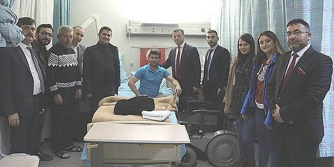 ANKARA?da tedavi gören?Kapaklılı Gazi Tarık?Cür, hastanede kendisi gibi terörle mücadelede iki bacağını kaybeden Niğdeli Gazi Ali Evlek ve Erzurumlu Gazi Yahya Kemal Çalayır ile birlikte aynı odada protez bacakların takılması için rehabilitasyon tedavisi görüyor.?Gazileri ziyaret eden Başkan?Çetin, geçmiş olsun dileğinde bulundu.