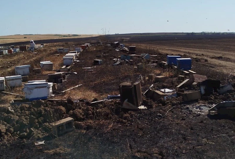 Tekirdağ’ın Hayrabolu ilçesinde çıkan anız yangınında 400 arı kovanı yandı.