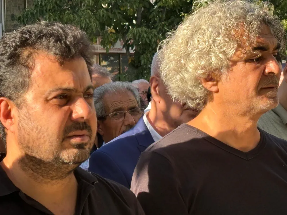 Selim Arıkök ve kardeşleri, cami bahçesinde cenaze namazı öncesinde taziyeleri kabul etti.
