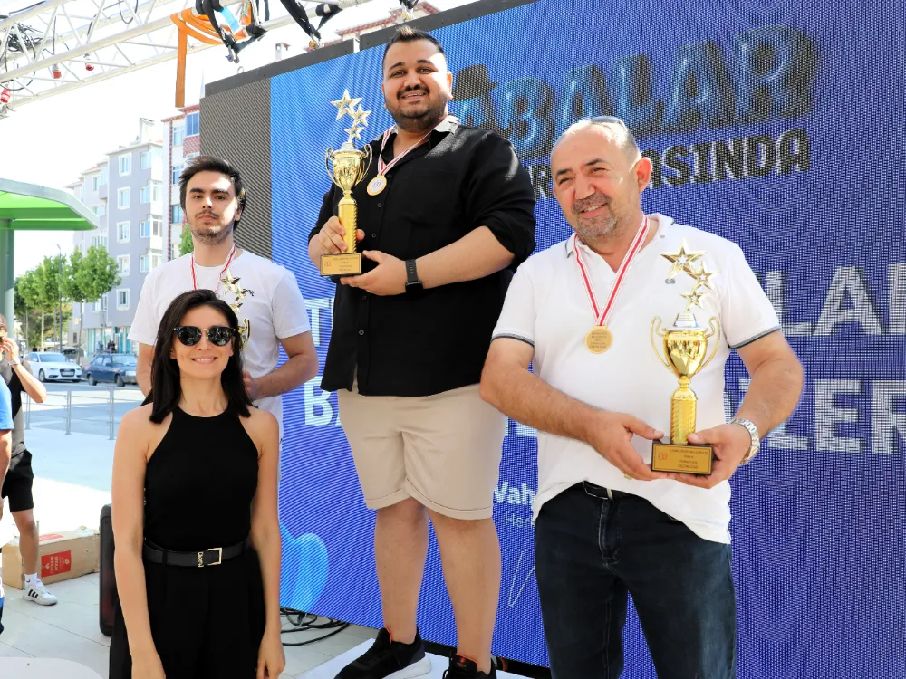 Çerkezköy Belediyesi tarafından Köşem Meydanı’nda Babalar Günü’ne özel düzenlenen Tavla Turnuvası’na 110 kişi katıldı. Çerkezköy Belediye Başkanı Vahap Akay’ın Belediye Başkan Yardımcısı Gökay Keleşoğlu ile birlikte tavla oynadığı turnuvada, finalde Emirhan Öztoprak’ı 5-1 mağlup eden İbrahim Kabak kazanırken; Yılmaz Çakır da 3’üncü oldu. Tavla Turnuvası’nda Belediye Başkan Yardımcıları Gökay Keleşoğlu, Yunus Erçin ve Meclis Üyesi Bulut Becerik te katılarak, turnuvanın heyecanına ortak oldular.