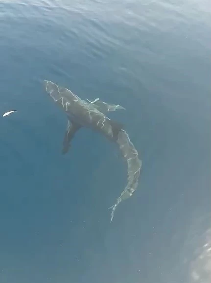 Edirne’deki Saros Körfezi sahiline kıyısı bulunan Erikli köyü sahili açıklarında balıkçılar, yaklaşık 2,5 metre uzunluğunda bir köpekbalığı görüntüledi.
