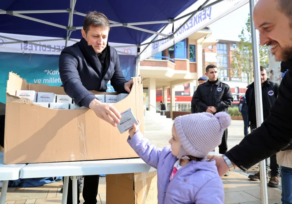 Çerkezköy Belediyesi tarafından Regaip Kandili nedeniyle Cumhuriyet Meydanı’nda vatandaşlara ve ilçe genelindeki tüm kamu kurum ve kuruluşlarına kandil simidi dağıtılarak, kandilleri tebrik edildi.