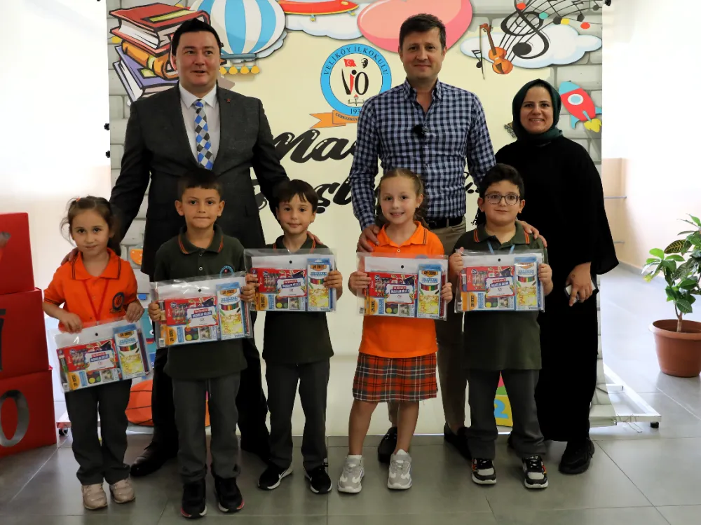 Veliköy İlkokulu’nda öğrencilere ücretsiz kırtasiye setini hediye eden Belediye Başkanı Vahap Akay, kırtasiye paketimizin içinde temel kırtasiye malzemelerinin bulunduğunu belirterek, “Bu yıl okula yeni başlayan öğrencilerimize verilmek üzere Belediyemiz tarafından temin edilen kırtasiye malzemelerinin kentimiz genelinde eğitim ve öğretim veren 18 ilkokulumuzda dağıtımı gerçekleştirildi” dedi.