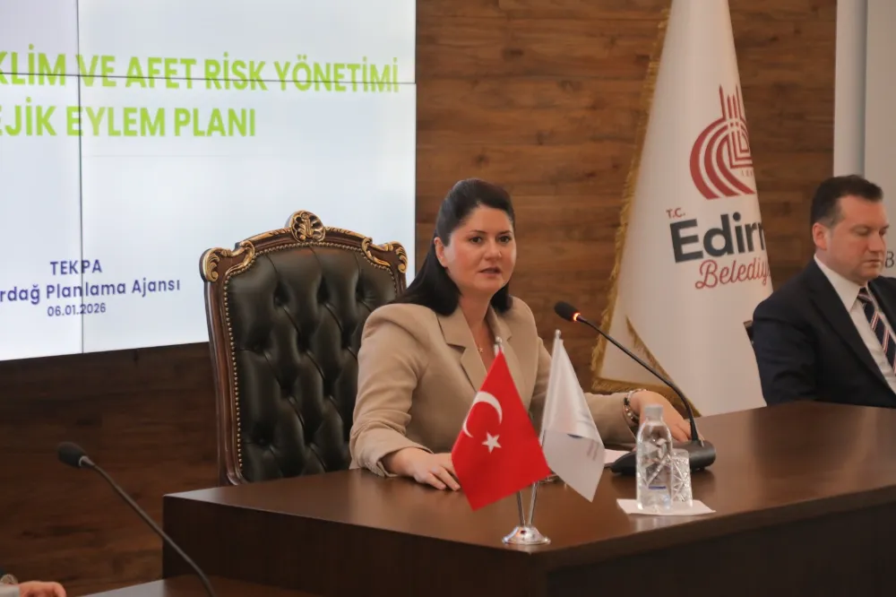 Trakya Belediyeler Birliği’nin “Birlikte Güçlü Trakya” vizyonu doğrultusunda yürüttüğü Trakya Bölgesi İklim ve Afet Risk Yönetimi Stratejik Eylem Planı İkinci Toplantısı, Edirne Belediyesi ev sahipliğinde gerçekleştirildi.