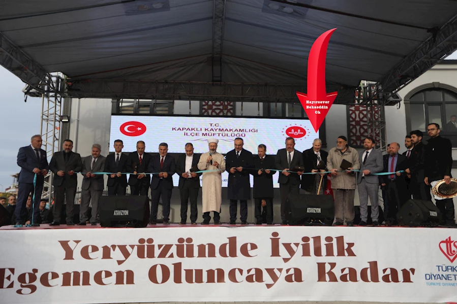 Kapaklı İlçe Müftüsü Şemsettin Şimşek’in makamındaki kapak fotoğrafımızda açıkça görülen ayıbın esas karesi ise açılış sırasında objektiflere yansıyor. Açılışta adını anmadığı hayırsever Behaeddin Ok’a hiçbir şekilde sahip çıkmayan Müftü Şemsettin Şimşek, kurdele kesim sırasında da 4 sıra ötede saf tutmasını görmüyor. Oysa aynı gün Çerkezköy’de Müjgan Serkan Karagöz Camisi’nin açılışını yapan Diyanet İşleri Başkanı Ali Erbaş’ın hemen yanı başında hayırseverler Serkan Karagöz ve Müjgan Karagöz yer aldı. Oysa Kapaklı'da, Diyanet İşleri Başkanı'nın bir yanında Vali Recep Soytürk, Kaymakam Mustafa Gürdal ve daha sonra da meclis üyeleri yer aldı. Erbaş'ın diğer yanında ise İlçe Müftüsü Şemsettin Şimşek kendisini yerleştirirken, hayırsever Behaeddin Ok'un nerede saf tuttuğu hiç aklına bile gelmiyor.