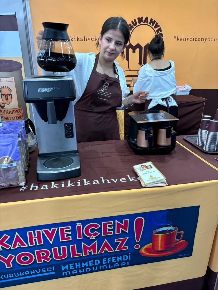 Fuarda dikkat çeken stantlardan biri de Çerkezköy Toptan Gıda San. Tic. Şti. oldu. Firma, fuar boyunca ziyaretçilere Kurukahveci Mehmet Efendi’nin asırlık kahvesi ve çay ikramında bulunarak büyük ilgi topladı.