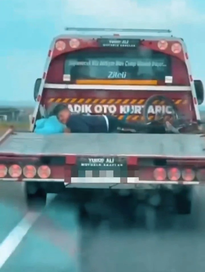 Görüntülerde küçük çocuğun hiçbir güvenlik önlemi olmaksızın çekici kasasında yolculuk etmesi yürekleri de ağza getirdi.