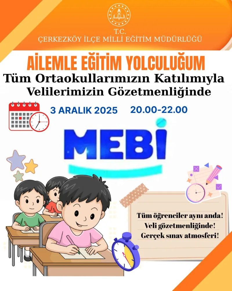 Çerkezköy İlçe Milli Eğitim Müdürlüğü, LGS ve YKS’ye hazırlanan öğrenciler için yeni bir uygulamayı hayata geçirdi. “Ailemle Eğitim Yolculuğum” projesi kapsamında, ortaokul ve lise öğrencilerine –özellikle son sınıflara öncelik verilerek, MEBİ platformu üzerinden düzenli deneme sınavları yapılacak.