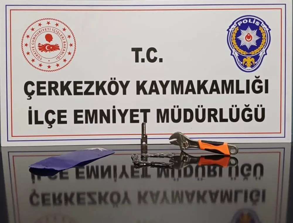Dün hırsızlık için hareket eden şüpheliler, minibüsten indikleri anda Çerkezköy ve Çorlu İlçe Emniyet Müdürlüğü ekiplerinin koordineli operasyonu ile gözaltına alındı. Yapılan aramada 1 İngiliz anahtarı, 1 maymuncuk anahtar kalıbı, 3 lehim teli, 1 plastik dil düşürme aparatı ve bol, uzun kadın kıyafetleri ele geçirildi.