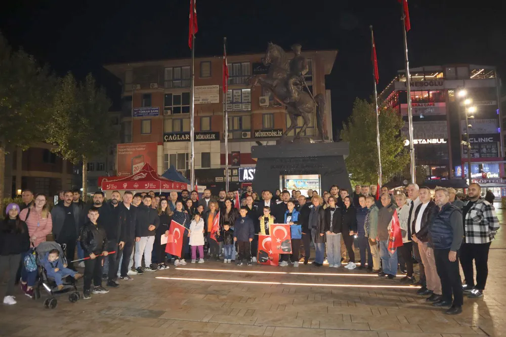 Gece boyunca süren nöbette gençler, Atatürk’ün fikirleri doğrultusunda Cumhuriyet’e sahip çıkma kararlılıklarını bir kez daha ortaya koydu.