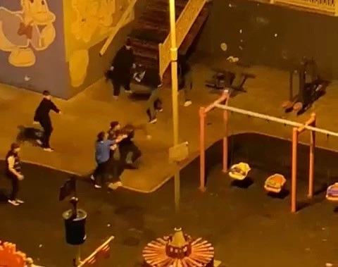 Tekirdağ’ın Çorlu ilçesinde bir çocuk parkında iki grup arasında çıkan tekmeli yumruklu kavga anı cep telefonu kamerasına yansıdı.