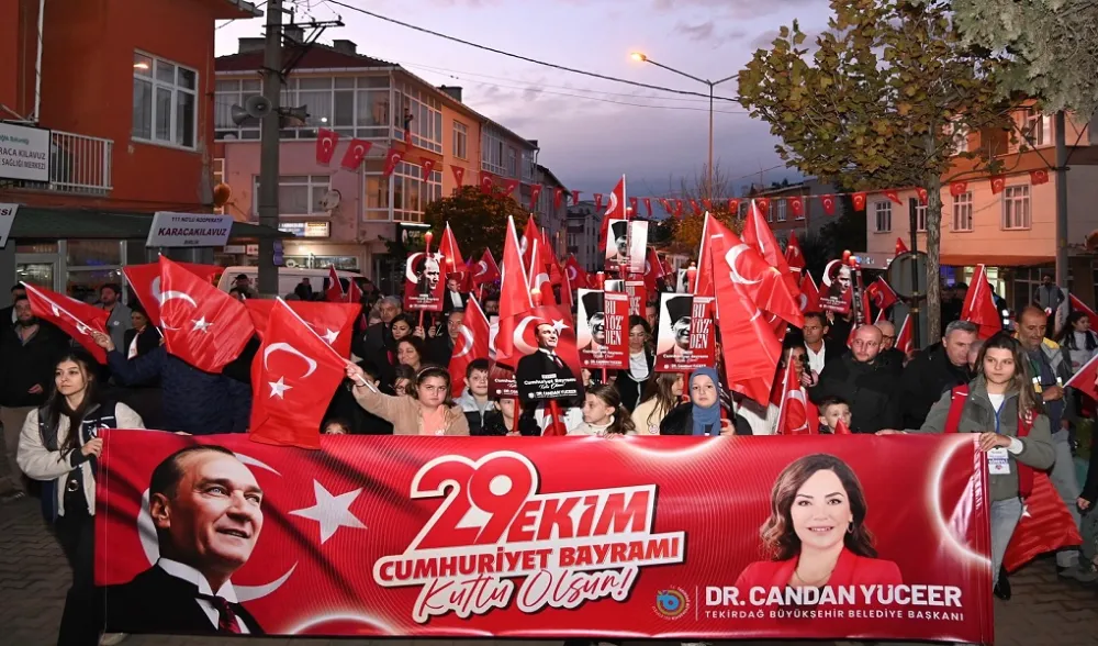 Tekirdağ Büyükşehir Belediyesi’nin 29 Ekim Cumhuriyet Bayramı kutlamaları kapsamında bu yıl “Cumhuriyet Köyü” ilan edilen Süleymanpaşa Karacakılavuz Mahallesi’nde düzenlenen etkinlikler, büyük bir coşkuyla gerçekleştirildi. Fener alayı ve bando konseriyle doruğa çıkan kutlamalara yüzlerce vatandaş katıldı. Başkan Dr. Candan Yüceer, programda yaptığı konuşmada, “Cumhuriyet, sadece merkezde değil, kırsalda da eşit yurttaşlık, özgürlük ve kalkınma demektir” dedi.