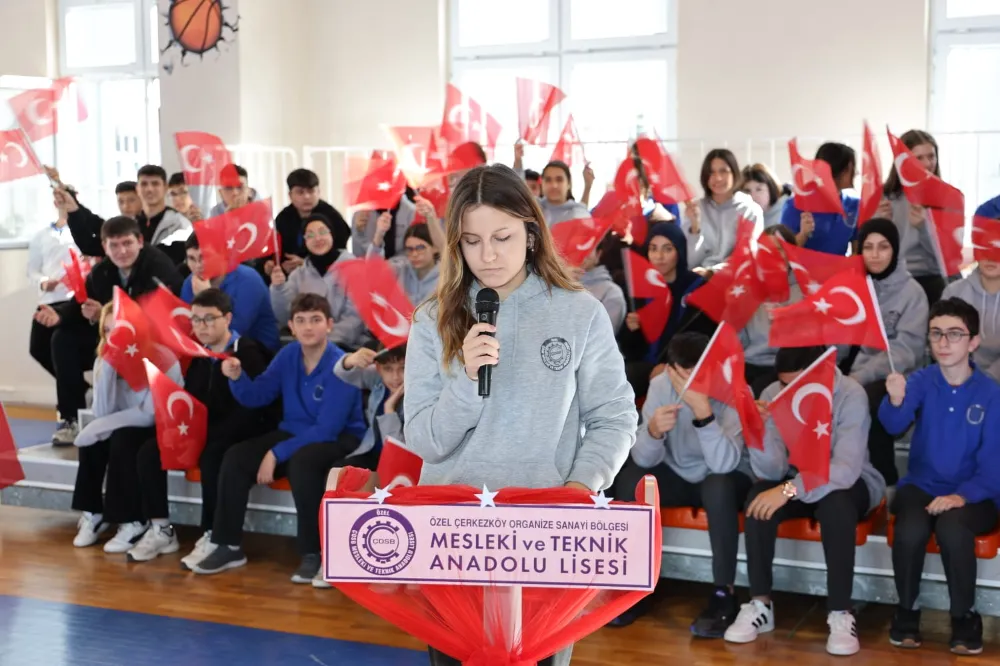 Cumhuriyetimizin ilanının 102. yılı dolayısıyla Özel Çerkezköy Organize Sanayi Bölgesi Mesleki ve Teknik Anadolu Lisesi’nde düzenlenen kutlama programı, yoğun katılımla gerçekleşti. Okulun spor salonunda yapılan törende öğrenciler, öğretmenler, veliler ve idareciler bir araya gelerek Cumhuriyet’in anlam ve önemini bir kez daha derinden hissetti.