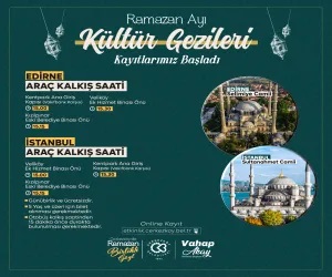 Edirne ve İstanbul Kültür Gezilerimize katılmak isteyen vatandaşların etkinlik.cerkezkoy.bel.tr adresinden kayıtlarını online olarak yaptırabileceklerini kaydeden Belediye Başkanı Vahap Akay, “İstanbul’a gidecek otobüslerimiz Sultan Ahmet Meydanı’nda, Edirne’ye gidecek olan otobüslerimiz ise vatandaşlarımızı Selimiye Camii önüne götürecek. Otobüslerden inecek olan vatandaşlarımız saat 21.30’a kadar İstanbul ve Edirne’nin tarihi ve turistik mekanlarını gezme ve görme imkanı bulup, iftarlarını yapıp, teravih namazlarını kıldıktan sonra otobüslerimiz vatandaşlarımızı indirdiği yerden alarak tekrar Çerkezköy’e dönecek” açıklamasını yaptı.