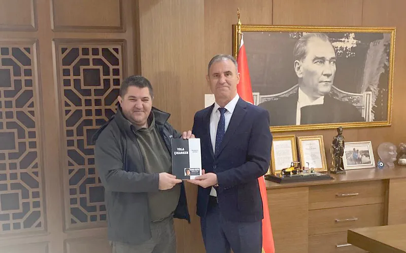 Çerkezköy Belediye Başkanı Vahap Akay’ın şehir dışında olması nedeniyle belediye başkanlığı görevini vekâleten yürüten CHP Çerkezköy Belediye Meclis Üyesi olan Cevdet Aykaç’ı ziyaret eden Genel Yayın Yönetmenimiz Albez, hem vekaletinin hayırlı olması temennisinde bulundu hem de kitabını hediye etti.
