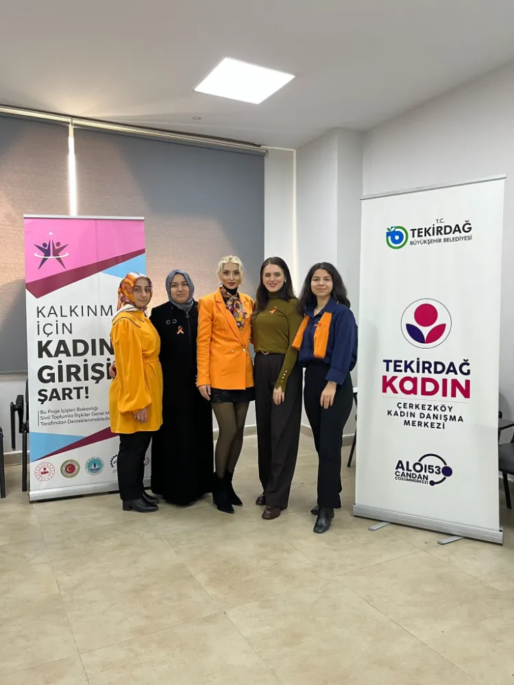 Atatürk Kültür Merkezi’nde, KAGADER ve Tekirdağ Büyükşehir Belediyesi Çerkezköy Kadın Danışma Merkezi iş birliği ile insan hakları, kadına şiddet ve dijital şiddet konulu farkındalık programı düzenlendi.