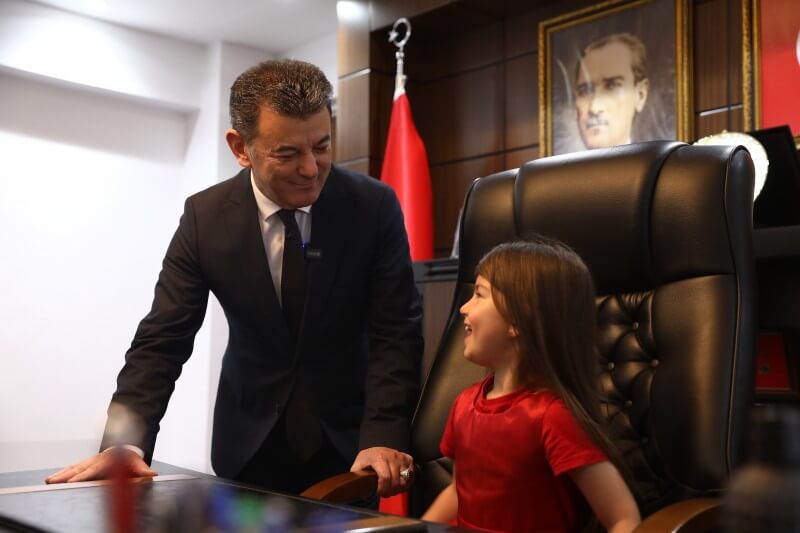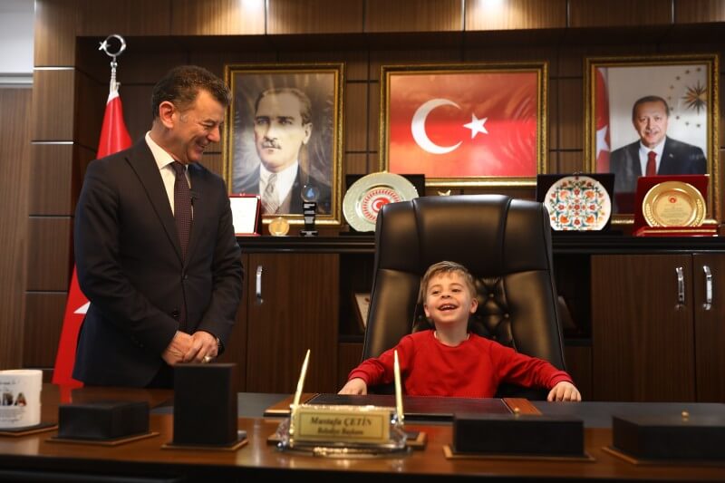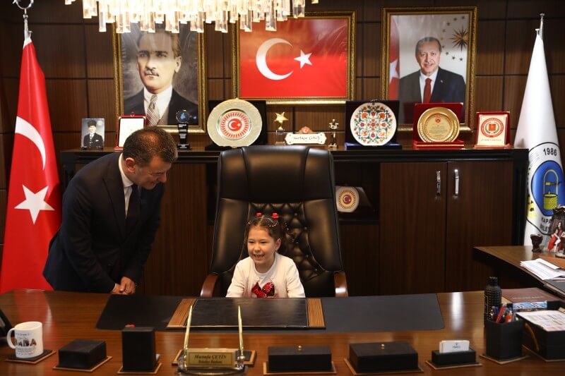 Kapaklı Belediye Başkanı Mustafa Çetin, 23 Nisan Ulusal Egemenlik ve Çocuk Bayramı dolayısıyla başkanlık koltuğunu anaokulu öğrencileri Asel Irmak Genç, Ata Çalışkan ve İrem İşyar’a devretti.
