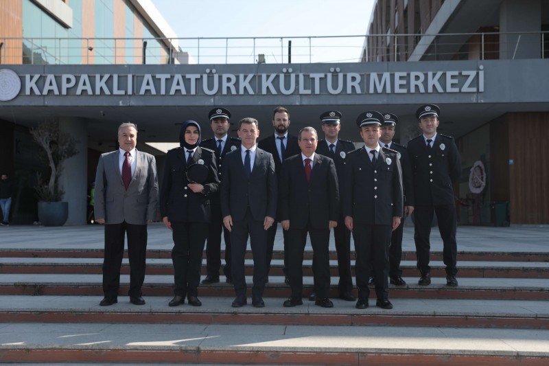 Kapaklı Atatürk Kültür Merkezi’nde Türk Polis Teşkilatı’nın 180’inci kuruluş yıldönümü ve 10 Nisan Polis Haftası dolayısıyla tören düzenlendi. Kapaklı İlçe Emniyet Müdürlüğü çelenginin İlçe Emniyet Müdürü Kubilay Sinan Keşki tarafından Atatürk Anıtı’na sunulmasının ardından saygı duruşunda bulunuldu ve İstiklal Marşımız okundu. Ardından Emniyet Genel Müdürü ve Tekirdağ İl Emniyet Müdürü’nün mesajları okundu. Törenin ardından emniyet personeli ve protokol mensupları bir süre sohbet ederek hatıra fotoğrafı çektirdi.