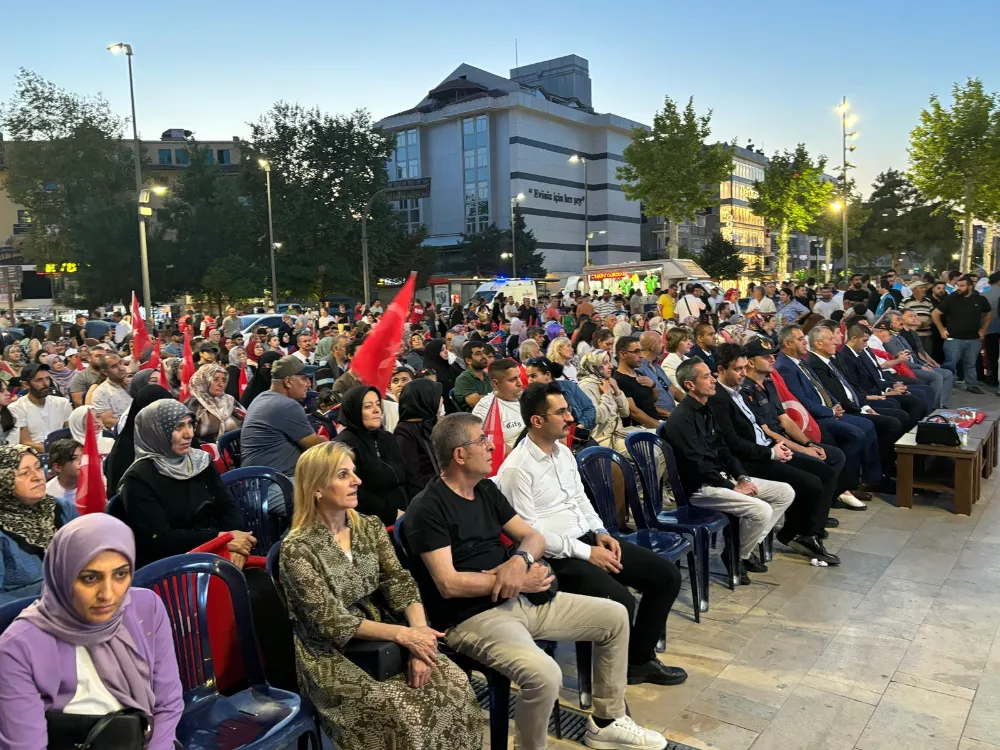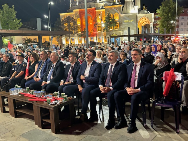 Kaymakam Günlü daha sonra sözlerini şöyle sürdürdü: “Gazilerimize şükranlarımı sunuyorum. Dokuz yıl önce yaşananlar, milletimizin tarihinde görülmüş en büyük ihanetlerden biridir. 15 Temmuz’da yaşananlar sadece bir darbe girişimi ya da ülke yönetimini ele geçirme çabası değildir. Bu kalkışmayla milletimizin parçalanması, kaos ortamı yaratılması ve ülkenin işgale hazır hale getirilmesi amaçlanmıştır. Askerimizin, polisimizin, yargı organlarımızın ve tüm devlet güçlerimizin içerisine yerleştirilmiş olan şer ve ihanet çeteleri harekete geçirilmiş; milletimizin silahlarıyla, milletimizin Meclisi başta olmak üzere tüm hassas noktalara, millî ve manevî değeri yüksek yerlere saldırılar düzenlenmiş; devlet büyüklerimiz ve yüce milletimiz hedef alınmıştır. Tarihin tüm dönemlerinde her türlü ihanete karşı koymuş, esareti kabul etmektense ölmeyi tercih etmiş olan necip milletimiz, bu ihanetin karşısında da iman dolu göğsünü siper etmiştir. Cumhurbaşkanımız Sayın Recep Tayyip Erdoğan’ın çağrısı üzerine meydanlara, köprülere, havaalanlarına akın etmiş; canı pahasına tanklara, uçaklardan atılan bombalara direnmiş ve bu alçaklığa geçit vermemiştir. Milletimiz, sadece birkaç saat içinde hainlere gereken dersi vermiştir. Milletimizin kutlu direnişi ve zaferinden sonra devletimiz; askeri, polisi, jandarması, yargısı ve tüm kurumlarıyla bu ihanetin içerisinde olanları temizlemek için mücadele başlatmış; hiç kimsenin yaptığı yanına kâr kalmamış, hukuk ilkeleri çerçevesinde herkes hak ettiği şekilde cezalandırılmış ve bu mücadele kararlılıkla sürdürülmektedir. Dün olduğu gibi bugün de devletimizin yumruğu hainlerin tepesindedir. Mücadelenin adı Türkiye’dir! Saygıdeğer katılımcılar, Bugün, sembolik demokrasi nöbeti tuttuğumuz bu meydanlardan, milletçe tek yürek ve tek yumruk olarak; benzer bir ihanete asla fırsat vermeyeceğimizi, vatanımızın bütünlüğü, milletimizin birliği, devletimizin bekası için canımızı feda etmeye hazır olduğumuzu tüm dünyaya bir kez daha ilan ediyoruz. Karşımıza çıkacak güç ve kullandıkları maşalar kim olursa olsun; ihanet nereden gelirse gelsin, millî iradeye, demokrasimize, ülkemize ve kutsal bildiğimiz değerlere sahip çıkma azim ve kararlılığımızı bir kez daha haykırıyoruz. Bu duygu ve düşüncelerle, aziz şehitlerimizi rahmetle, gazilerimizi minnetle bir kez daha anıyor, katılımlarınızdan dolayı sizlere teşekkür ediyorum. “Hakimiyet, kayıtsız şartsız milletindir.” ilkesine olan bağlılığımızı, devletimizi korumak için onu kuranlar kadar kararlı olduğumuzu ifade ederek hepinizi saygıyla selamlıyorum. Millî Birlik ve Demokrasi Gününüz kutlu olsun”