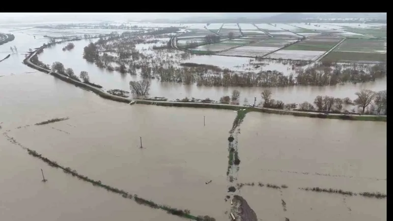 Edirne’nin Meriç ilçesine bağlı Subaşı beldesinde, Meriç Nehri’ndeki debinin yükselmesi nedeniyle tarım arazileri sular altında kaldı.