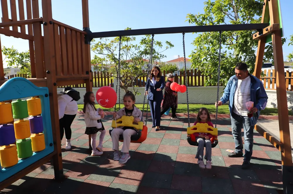 Ayrıca parsel içinde 65 metrekare büyüklüğünde, çocuklar için ahşap oyun grubu sahası bulunmaktadır.