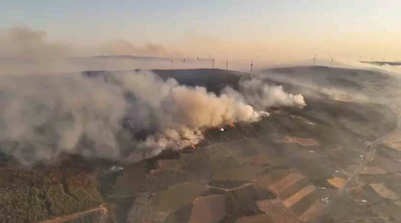 Şarköy’e bağlı kırsal alanda dün öğle saatlerinde başlayan orman yangını, rüzgarın etkisiyle kısa sürede büyüyerek geniş bir alana yayıldı. Alevlerin yerleşim alanlarına sıçramaması için Orman Genel Müdürlüğü ekiplerinin yanı sıra jandarma, emniyet, AFAD, itfaiye ve sağlık ekiplerinden yüzlerce personel yoğun çaba harcıyor. İlçedeki 2 köy tedbir amaçlı tahliye edildi. Yangın dronla havadan görüntülenirken, gökyüzüne yükselen dumanlar kilometrelerce uzaklıktan görülebiliyor. Şehirdeki neredeyse tüm kamu kurumlarındaki personelin seferber olduğu yangında, yerleşim alanlarını korumak için karadan ve havadan yoğun müdahale devam ediyor.
