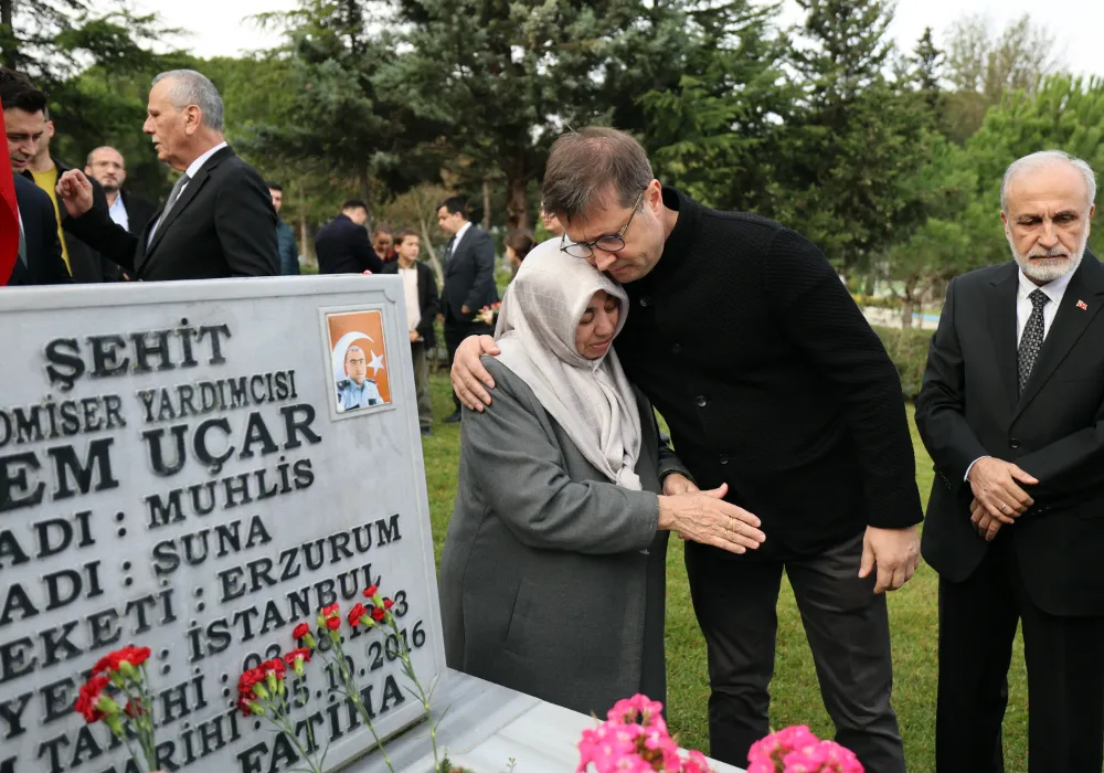 Şehit Erdem Uçar İmam Hatip Ortaokulu öğrencilerinin Kuran-ı Kerim tilavetinin ardından dualar edildi. Daha sonra Belediye Başkanı Vahap Akay, ile Kaymakam Nazmi Günlü ve protokol üyeleri hep birlikte Şehit Komiser Yardımcısı Erdem Uçar ve diğer şehitlerimizin kabirlerine karanfil bıraktı.