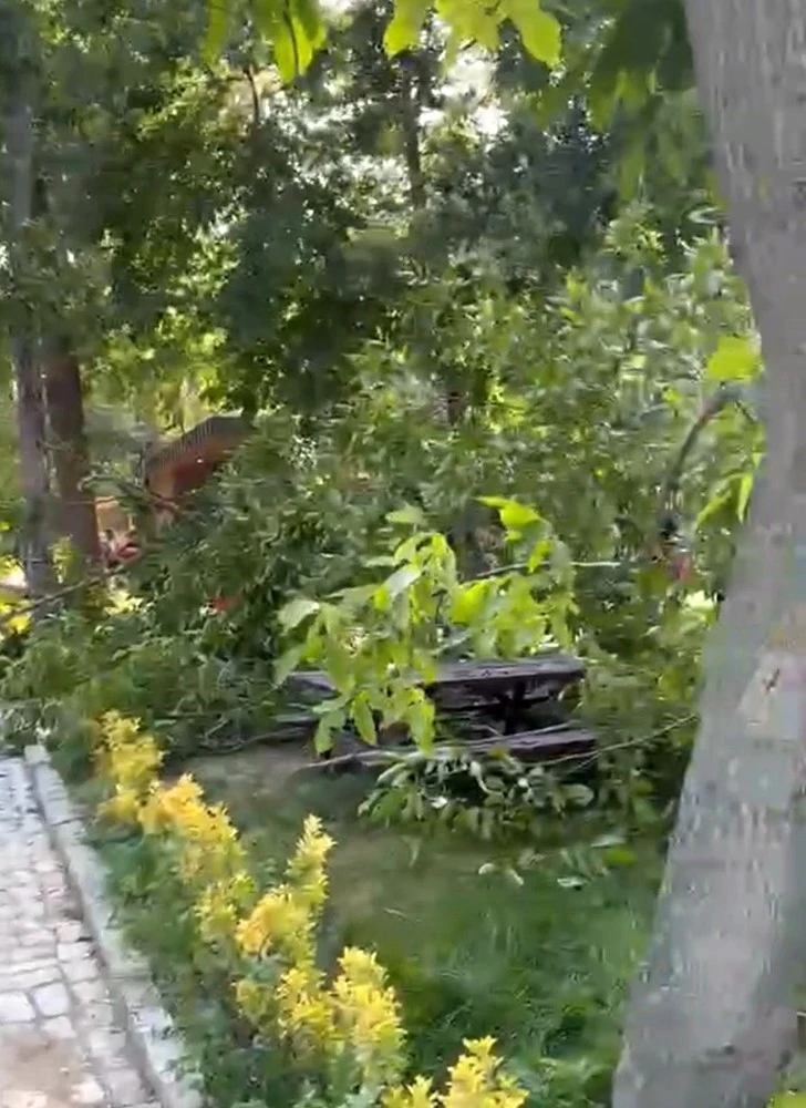 Edirne’de vatandaşlar piknik yaptığı esnada masanın üzerine devrilen ağaç sebebiyle büyük korku yaşadı.