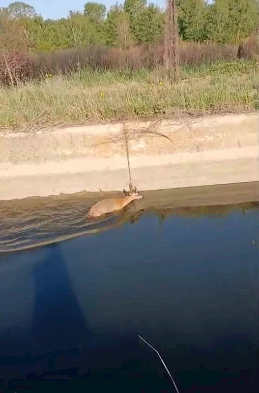 İpsala’ya bağlı Sarıcaali köyünde, sulama kanalının etrafında gezen bir karaca kanala düştü. Kurtulmaya çalışan karacayı fark eden çevredeki köy halkı, karacayı kurtarmak için çalışma başlattı. Karaca, kısa sürede su kanalından çıkarıldı.