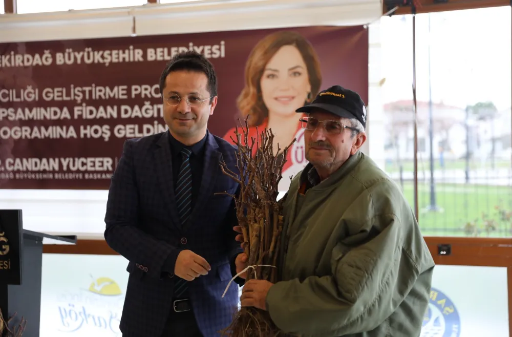 Tekirdağ Büyükşehir Belediyesi “Bağcılığı Geliştirme Projesi” kapsamında Şarköy ilçesinde üreticilere yapıncak asma ve Bursa Siyahı İncir fidanı dağıtımı gerçekleştirdi. Proje kapsamında 15 bin adet yapıncak asma fidanı ile bin 890 adet incir fidanı üreticilere teslim edildi.