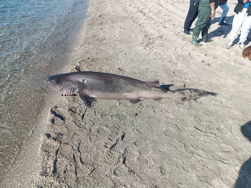 Tekirdağ’ın Marmaraereğlisi ilçesinde 2,5 metre boyunda camgöz türü köpek balığı sahilde ölü bulundu.