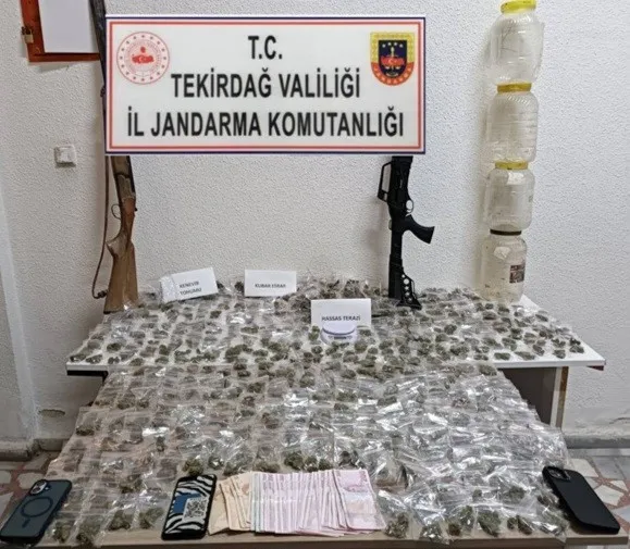 Tekirdağ İl Jandarma Komutanlığı ekiplerince Marmaraereğlisi ilçesinde düzenlenen operasyonda satışa hazır kubar esrar, kenevir ve ruhsatsız silahlar ele geçirildi.