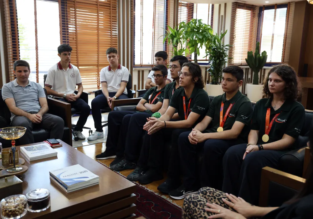 Çerkezköy Belediye Başkanı Vahap Akay, Türkiye’nin en büyük teknoloji festivali TEKNOFEST 2025’te büyük bir başarıya imza atarak ilçeyi gururlandıran Seval Ahmet Çetin Fen Lisesi öğrencilerini makamında ağırladı.
