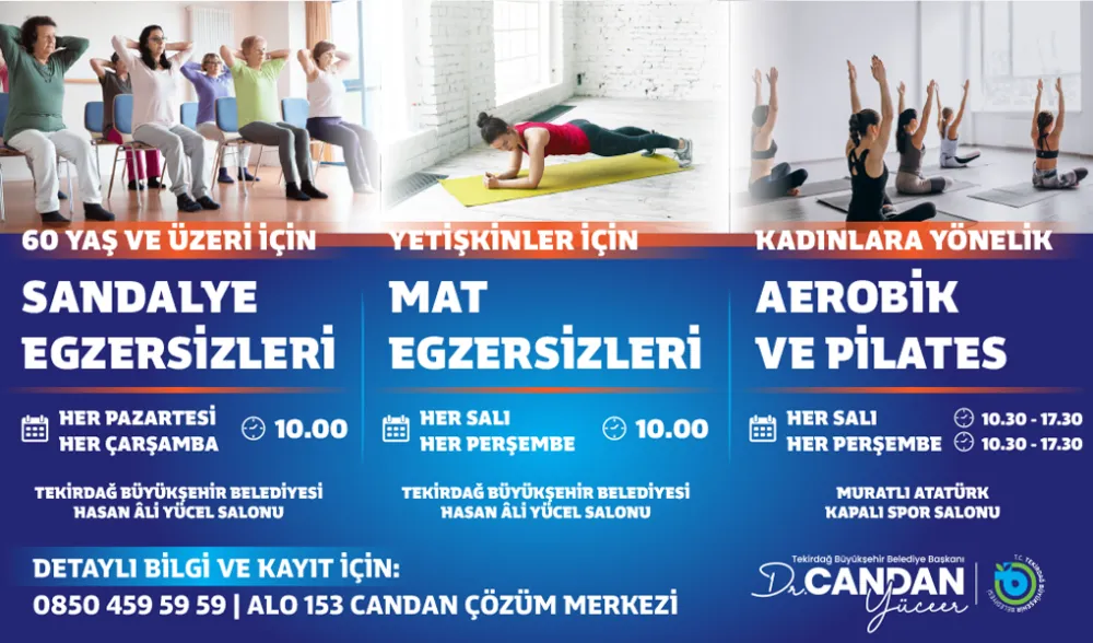 Spor hizmetleri ilçe merkezleriyle de sınırlı kalmıyor. Muratlı’da yaşayan 18 yaş üstü kadınlar için Muratlı Atatürk Kapalı Spor Salonu’nda aerobik ve pilates etkinlikleri düzenleniyor. Her salı ve perşembe günleri 10-30 - 11.30 ve 17.30 - 18.30 saatleri arasında gerçekleştirilen dersler, kadınlara günün yorgunluğunu atma imkânı sunuyor. Alanında uzman eğitmenler tarafından yürütülen kurslarla, Tekirdağlı kadınların hem fiziksel hem de ruhsal sağlıklarının desteklenmesi amaçlanıyor.