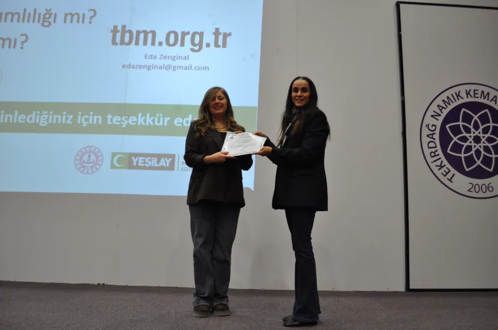 Öğrencilerden gelen soruların yanıtlanmasıyla son bulan programın ardından Çerkezköy Meslek Yüksekokulu Müdür Yardımcısı Doç.Dr. Emel Demir Askeroğlu tarafından Zenginal’e teşekkür belgesi takdim edildi.