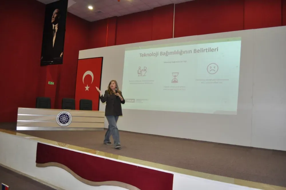 Çerkezköy Meslek Yüksekokulu’nda ‘Teknoloji Bağımlılığı’ konusunda öğrencileri bilgilendiren Psikolog Danışman Eda Zenginal, Türkiye’de günlük ortalama cep telefonu kullanımının 7 saati aştığına vurgu yaparak, “Cep telefonu, tablet veya bilgisayara olan bağımlılığı, teknolojik detoks ile azaltabiliriz. Bu aygıtlara ayırdığımız süreyi ne kadar azaltırsak hayattan alacağımız keyif de o oranda artar.” İfadelerini kullandı.