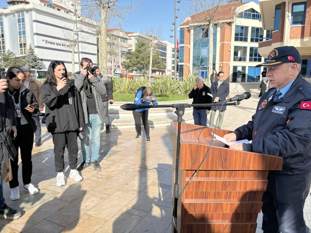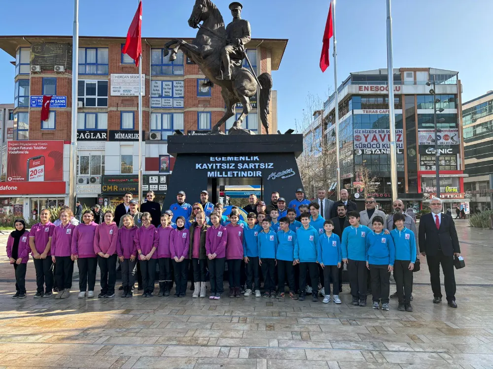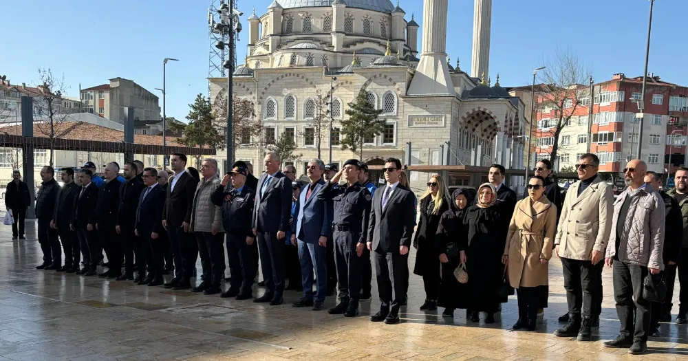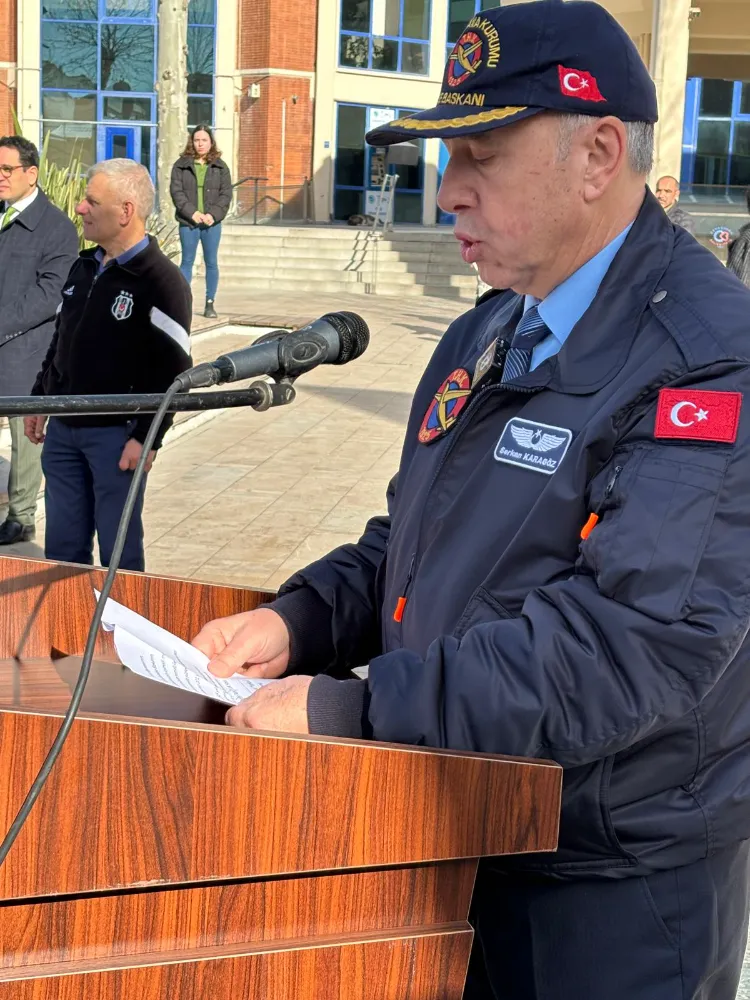 Tören, THK Çerkezköy Şube Başkanı Serkan Karagöz’ün Atatürk Anıtı’na çelenk sunmasıyla başladı. Saygı duruşu ve İstiklal Marşı’nın okunmasının ardından program konuşmalarla devam etti.