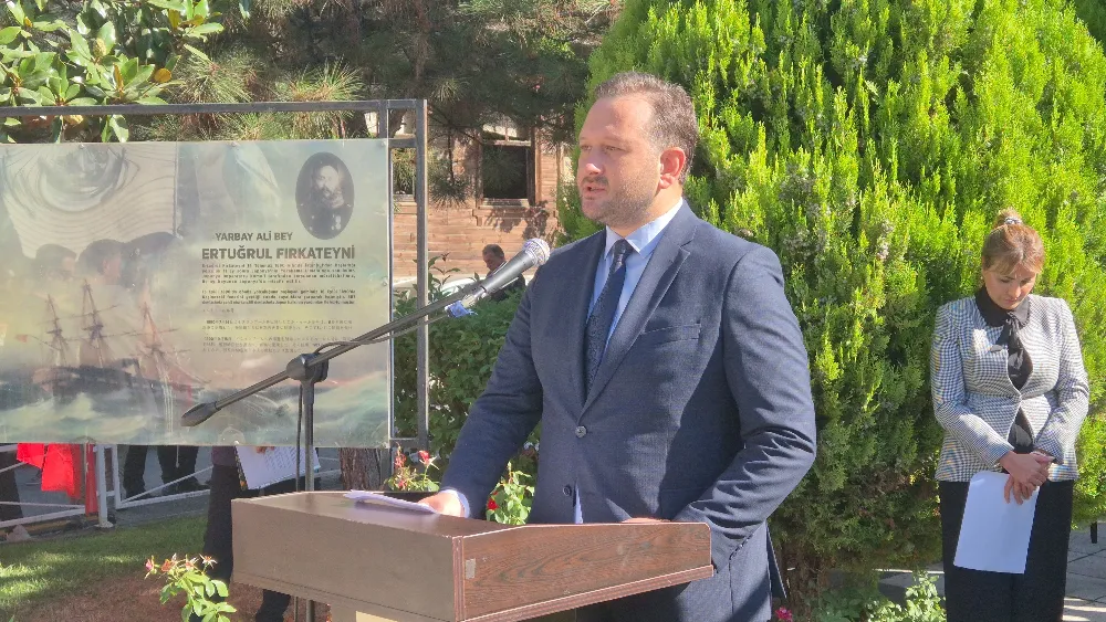 "Bugün burada, tarihin derinliklerinden gelen bir dostluğun, fedakârlığın ve kahramanlığın izlerini yâd etmek üzere toplanmış bulunuyoruz. 1890 yılında Japonya’ya bir dostluk seferi için gönderilen Ertuğrul Fırkateyni, dönüş yolunda uğradığı elim bir deniz kazasında 587 kahraman evladımızı şehit vermiştir. Bu hazin olay, milletimizin yüreğinde derin bir acı bırakmış; ancak aynı zamanda Türk ve Japon halkları arasında sarsılmaz bir dostluğun temellerini de atmıştır. Bu anlamlı gün vesilesiyle, Tekirdağ Dedecik Köyü’nden yola çıkarak Ertuğrul Seferi’ne katılan Ertuğrul Süvarisi Yarbay Ali Bey’i de rahmet ve minnetle anıyoruz. Onun ve silah arkadaşlarının cesareti, vatan sevgisi ve görev bilinci; bizlere onurlu bir miras, gurur duyulacak bir tarih bırakmıştır."