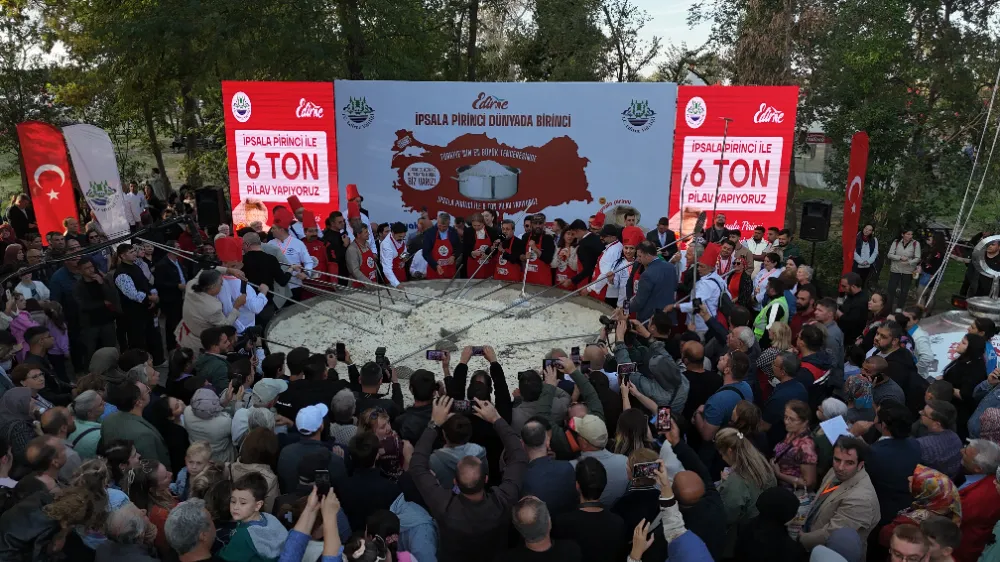 Kültür ve Turizm Bakanlığının Edirne’de düzenlediği "Yaşayan Miras Festivali" çerçevesinde, 6 ton pirinç pilavı pişirildi.