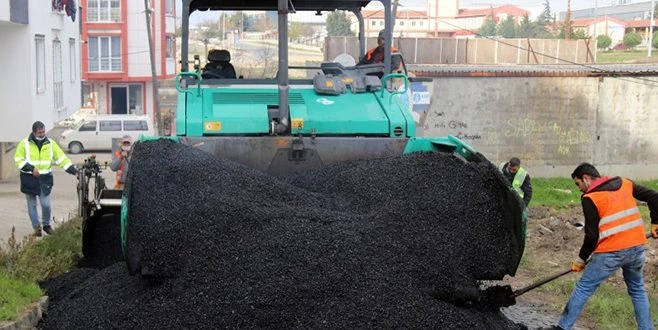 Çerkezköy`de Yıldırım Beyazıt Mahallesi`nde sıcak asfalt yol yapım çalışmaları devam ediyor.