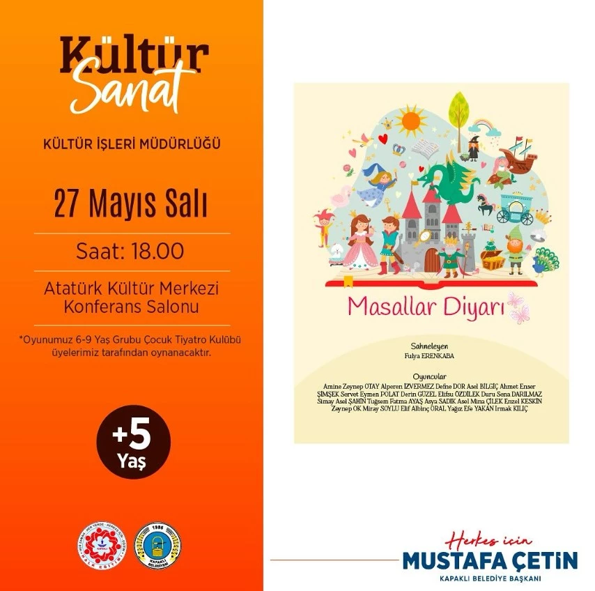 Kapaklı Belediyesi, belediyenin Çocuk Tiyatro Kulübü’nün 6-9 yaş grubunun Fulya Erenkaba eğitmenliğinde hazırladığı ‘’Masallar Diyarı’’ adlı oyununa ev sahipliği yapıyor.