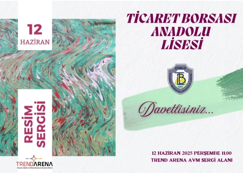 Ticaret Borsası Anadolu Lisesi öğrencilerinin yıl boyunca büyük emekle hazırladığı eserlerin yer alacağı serginin açılışı 12 Haziran Perşembe günü saat 11.00’de Trend Arena AVM Sergi Alanı’nda gerçekleşecek.