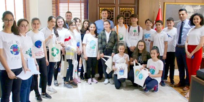 Çerkezköy Özel Gülerçin Koleji öğrencileri, Belediye Başkanı Vahap Akay`ı ziyaret ederek, ?Çevre Haftası? kapsamında yaptıkları çalışmalar hakkında bilgiler verdi.