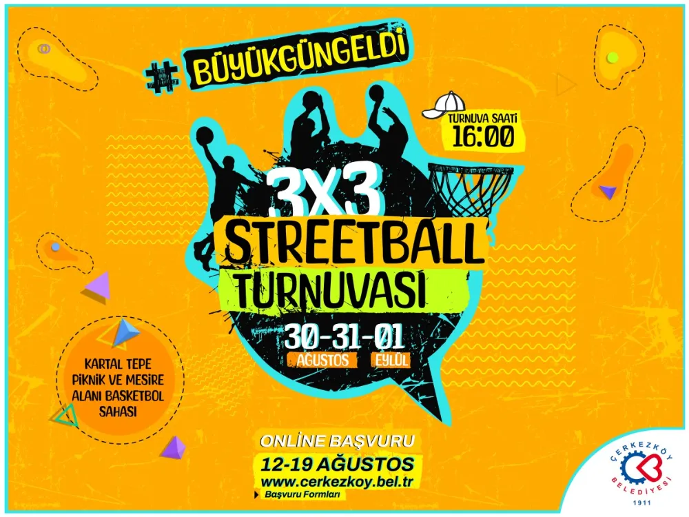 Her yıl geleneksel olarak düzenlenen Çerkezköy Belediyesi 10. Streetball Turnuvası’nın kayıtları 12-19 Ağustos tarihleri arasında yapılacak.