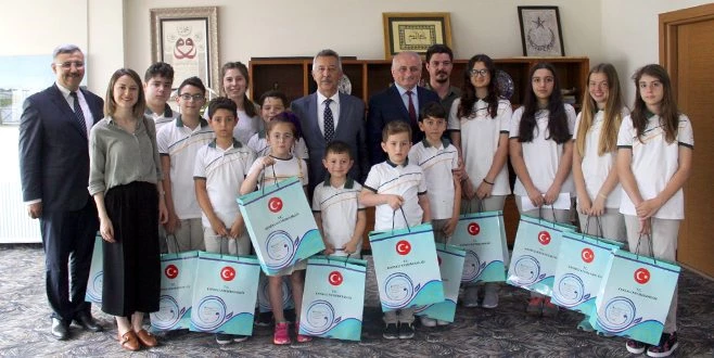 Kapaklı Kaymakamı Mustafa Ünlüsoy ve Belediye Başkanı Mustafa Çetin Başakşehir Okulları`ndan öğrencileri kabul etti.