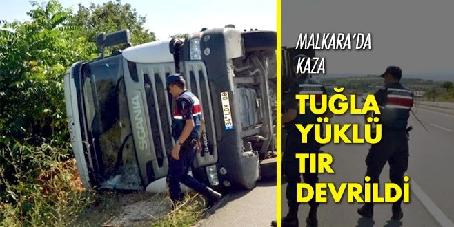 Kaza, Malkara-Keşan yolu üzerindeki Haliç Mahallesi rampasında meydana geldi. Tekirdağ`dan aldığı tuğlaları Keşan`a götüren 26 yaşındaki sürücü Gökmen Çağlar?ın kullandığı 34 VRR 43 dorse plakalı tuğla yüklü TIR, sürücüsünün direksiyon hakimiyetini kaybetmesi sonucu devrildi. Kasada yüklü binlerce tuğla da şarampole saçıldı.