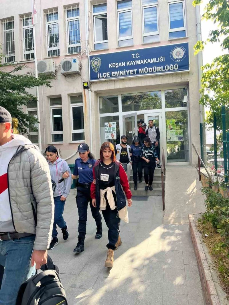 Edirne’nin Keşan ilçesinde, Emniyet Müdürlüğü ekiplerinin yaptığı uygulamada, 14 düzensiz göçmen yakalanırken, 3 otele kimlik bildirme kanununa aykırı hareket etmekten idari işlem başlatıldı.
